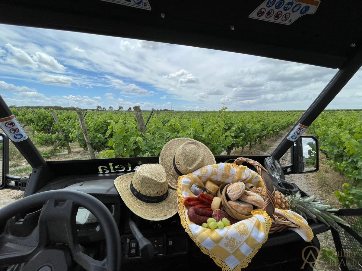 Our sandy soils invite you to explore Quinta da Atela in an all-terrain buggy. During the tour, you will visit our vineyards, the cork oak forest, the Paúl da Gouxa Natural Reserve, Cabeço da Bruxa, and the largest Black Willow in the Iberian Peninsula.
